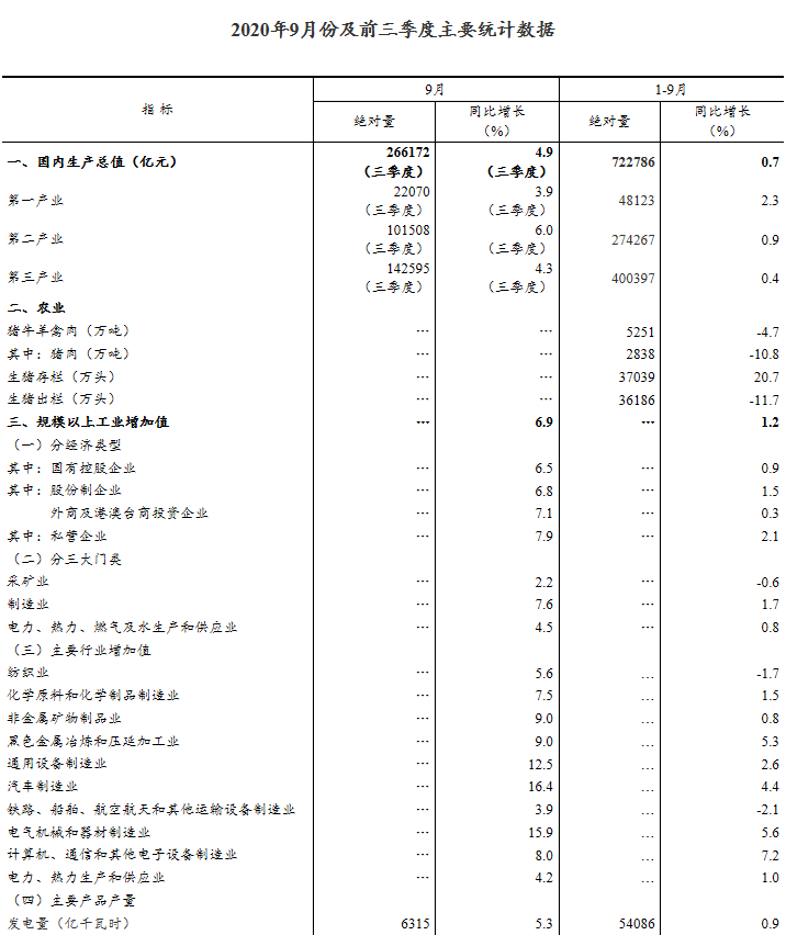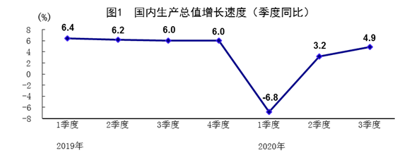 资讯速递 > 国家统计局:前三季度经济增长由负转正 第三季度国内生产总值增长4.9%