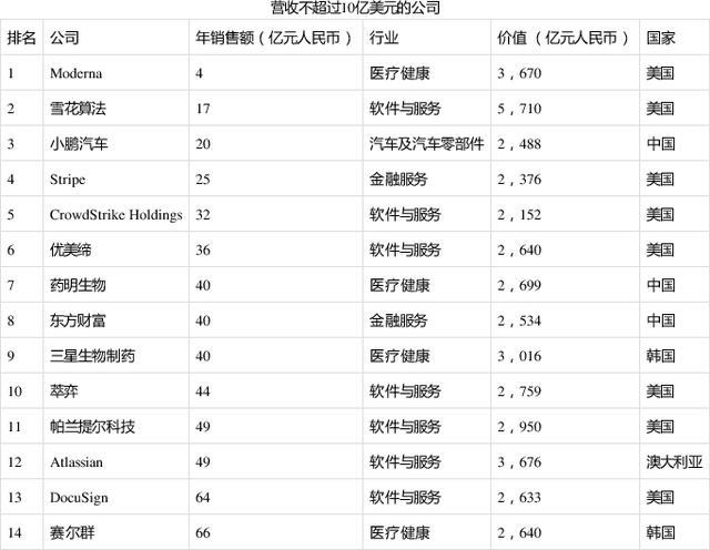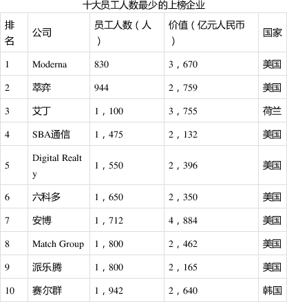 美国主要新冠疫苗研发公司Moderna是“胡润世界500强”中年销售额最低的公司,仅4亿元人民币,却创造了3670亿元的价值。