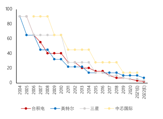 在芯片制程技术上,每隔一段时间都会进行迭代,台积电、英特尔、三星和中芯国际整体也保持着同样的迭代节奏。