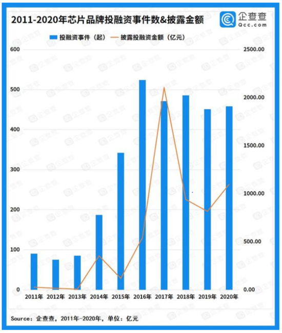 近十年我国芯片半导体品牌投融资数据, 图源企查查大数据研究院