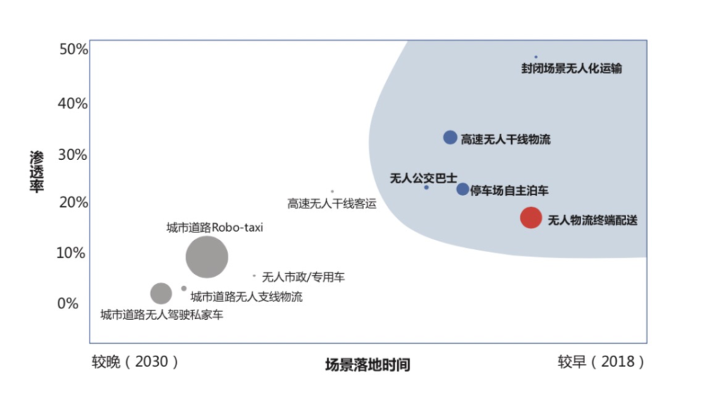 无人配送车业务属于末端物流配送场景。国际管理咨询公司罗兰贝格预计,无人物流终端配送将成为最快落地的自动驾驶场景之一。