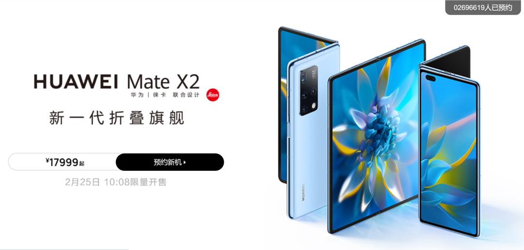 值得一提的是,华为Mate X2官网预约已经超230万人。据《国际金融报》记者了解,苏宁易购平台已于2月22日21点08分面向苏宁Super会员开启预约,2月25日10:08分开始线上抢购;此外,记者还注意到,华为京东自营官方旗舰店的预约也已开启,截至记者发稿,页面显示已经有51.5万人预约。