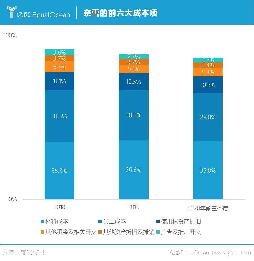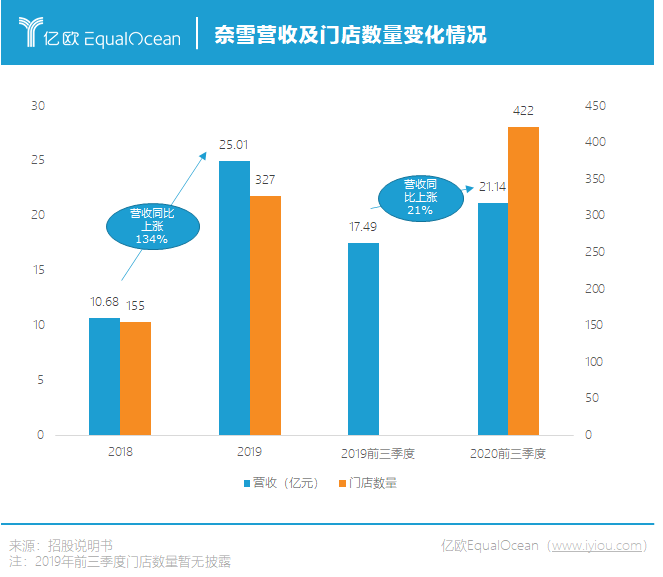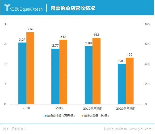 大意是指中国的市场规模像汪洋大海一样无边无际,而市场中的各家企业,就像水中的鱼一样,如此庞大的市场体量,必然会产生规模巨大的企业。 将这句总结置于微观产业也同样成立。 以茶饮行业为例,2017-2019年新式茶饮市场规模年复合增长率高达48.75%。2020年喜茶完成C+轮融资,估值超160亿元;2021年奈雪的茶完成C轮融资,估值20亿美元。 不过与激荡并存的是,茶饮行业的分水岭正在逐步形成,行业的准入门槛正明显上升,具备竞争优势的品牌开始探寻更大的星空。 在2月11日也是大年夜,奈雪正式提交上市申请,冲击新式茶饮第一股。奈雪为何要抢跑上市?高端茶饮的生意好做吗?茶饮企业的价值我们又该如何理解? 亚马逊CEO贝佐斯曾言:“我经常被问到一个问题,未来十年会有什么样的变化?但我很少被问到未来十年什么是不变的,我认为第二个问题比第一个问题更重要,因为你需要将你的战略建立在不变的事物上。” 在消费品行业,这一底层逻辑则是“人民群众对美好生活的向往”。 2015年,彭心在深圳卓越世纪开出了奈雪的首家门店,主推茶饮和软欧包等产品。喜茶则在2012年就已然成立,主要产品为芝士茶、奶霜茶、水果茶等系列。 虽成立时间有所差异,但两者的爆发期均在2016年前后。一个典型证明是,喜茶于2016年8月完成亿元A轮融资,而奈雪在两个月后也同样拿到天图资本的亿元融资。 无论是奈雪还是喜茶,其核心逻辑都是通过更好的产品及服务供给,更人性化的消费体验,更有设计思维导向的用户交互过程,激发消费者更多的消费需求。 新式茶饮在这一过程中做的最大创举,就是将奶茶这一传统饮品,升级成了年轻人的轻奢生活方式。从更大范围来看,抓住Z世代的泡泡玛特、完美日记等,均概莫如是。 除了奈雪、喜茶之外,蜜雪冰城也是茶饮行业不可忽视的头部力量。 在奈雪招股书中,不难看出品牌A和品牌E分别代表着喜茶与蜜雪冰城。 与新式茶饮的高客单价不同,蜜雪冰城2块钱的冰激凌、4块钱的柠檬水,更多满足了广大县域级城市消费者对美好生活的向往,毕竟我国仍有6亿人月均收入只有1000元。 图源/奈雪的茶招股说明书 高端现制茶饮和中低端茶饮两大分类,也彰示出如今茶饮行业的两大主流发展路线。 一条是主打一二线城市,饮品价格在30元左右,基本是直营模式,占据商圈等优质物业位置;另一条是主打三四线下沉市场,饮品价格在10元以下,基本是加盟模式,主打低价。 这两条路线都已孕育出代表性的龙头企业,而中间价位带的竞争尤为激烈,尚未出现占据绝对优势的品牌。 虽然新式茶饮已经出现了诸多代表性企业,但外界一直好奇其经营状况究竟如何,从奈雪的招股书中我们或许可以一窥究竟。 先说盈利情况。据招股书披露,奈雪成立至今尚未实现盈利,2018年亏损6973万元,2019年亏损3968万元,2020年前三季度亏损2751万元。 当然对消费新品牌而言,短期盈利与否并非资本市场的主要关注点,长期的快速增长才是获取高估值的关键,而在这一点上奈雪同样面临着严峻的挑战。 餐饮企业的营收=进店人数*转化率*客单价。 其中的核心变量进店人数,主要取决于时间和空间。消费者购买茶饮的时间基本集中于下午茶时间,而空间则取决于门店的接待能力,两者皆易达到上限。因此传统餐饮企业想要增加营收,只能多开店。 奈雪也不例外,翻阅其过往的营收及门店数量情况,不难发现其营收增速基本与门店增速一致。 通过大量开店跑马圈地,奈雪的高速扩张还将持续。截至2020年三季度末,其门店总数一共有422家。而招股书中透露,奈雪计划于2021年及2022年,主要在一线城市及新一线城市再分别开设约300间及350间门店。 但奈雪的风险也正隐藏于此。先不论快速拓展后人才管理是否跟得上,以及疫情对2020年业绩造成多大程度影响,其单店模型在过去几年已悄然发生变化。 随着门店数量的增加,奈雪单店订单量与销售额均出现明显下滑。2020年前三季度,其单店销售额为2.01万元/天,相较于上年同期的2.89万元大幅下滑了30%。 奈雪对此给出的解释是:“主要是由于我们继续在整个网络中开设新的奈雪茶饮店,令现有奈雪茶饮店的访客量及订单分布更均衡”。 单店营收下滑的同时,同店利润率也在减少。2019年前三季度,奈雪同店利润率为21.8%,时至2020年,这一数字变为12.6%。 对于以上问题,奈雪也正尝试解决,PRO店正是其第一招。 2020年11月,奈雪正式推出PRO店。其主要差异在于去掉现制烘焙,改为统一配送烘焙产品,采用小店模式,定位高客流区域,融合咖啡,通过智能化设备布局提升运营效率。 其相关负责人曾对外表示:“奈雪的常规门店选址都在一二线城市的大型商超与购物中心,门店已经相对饱和。所以我们PRO店开始扩大了选址范围,打通了商务和社区场景。” 招股书也透露,未来两年奈雪的新开门店中,预计PRO店占比将达到70%,成为其扩张的主力军。与标准店型相比,PRO店在品类、面积、单店总投入等方面均进行了优化,比如标准店的单店投入约为185万元,而PRO店则仅需125万元。 单店模型的优化是奈雪在前端的重要动作,但对于餐饮企业而言,更重要的工作在于消费者难以感知的后端。 悸动烧仙草创始人吴斌曾对亿欧EqualOcean表示:“茶饮行业肯定是短期拼产品和点位布局,中期拼供应链和品牌,长期拼人才的。” 从某种程度上看,新茶饮的竞争其实就是供应链的竞争。当