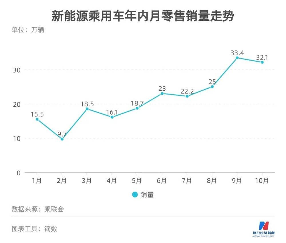 2021年是新能源汽车的“爆发之年”。乘联会数据显示,今年10月,新能源乘用车零售销量达到32.1万辆,同比增长141.1%。