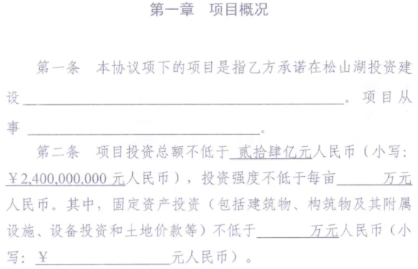 值得注意的是,东莞松山湖高新区项目投资效益协议合同书显示,项目投资总额不低于24亿元。
