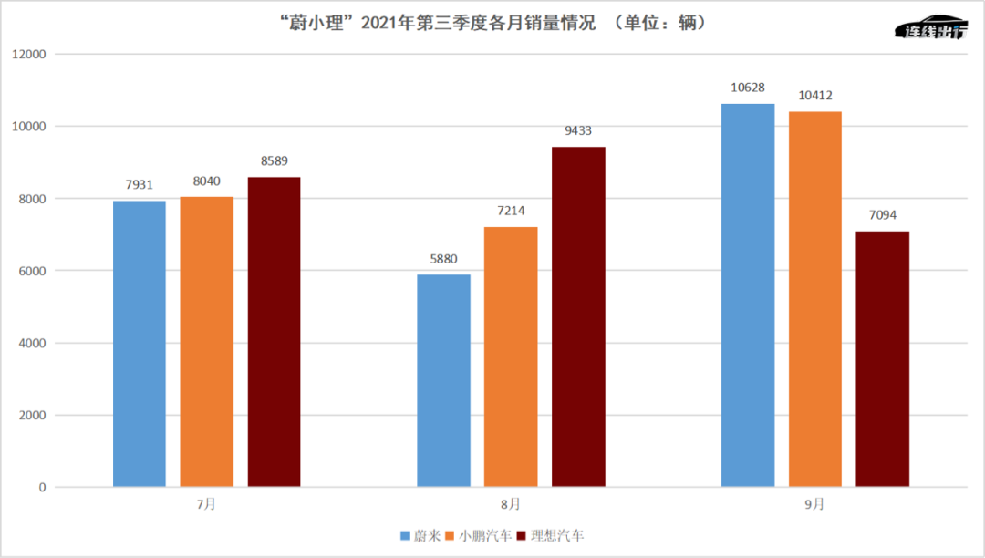 “蔚小理”2021年第三季度各月销量情况,连线出行制图