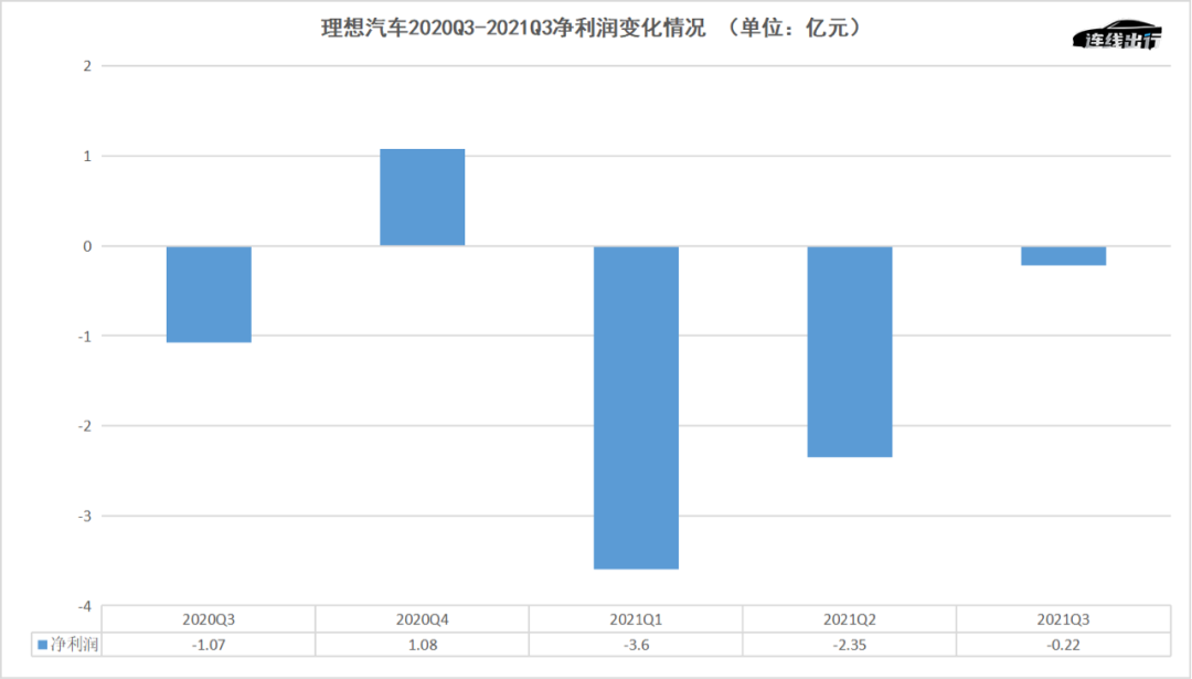理想汽车2020Q3-2021Q3净利润变化情况,连线出行制图