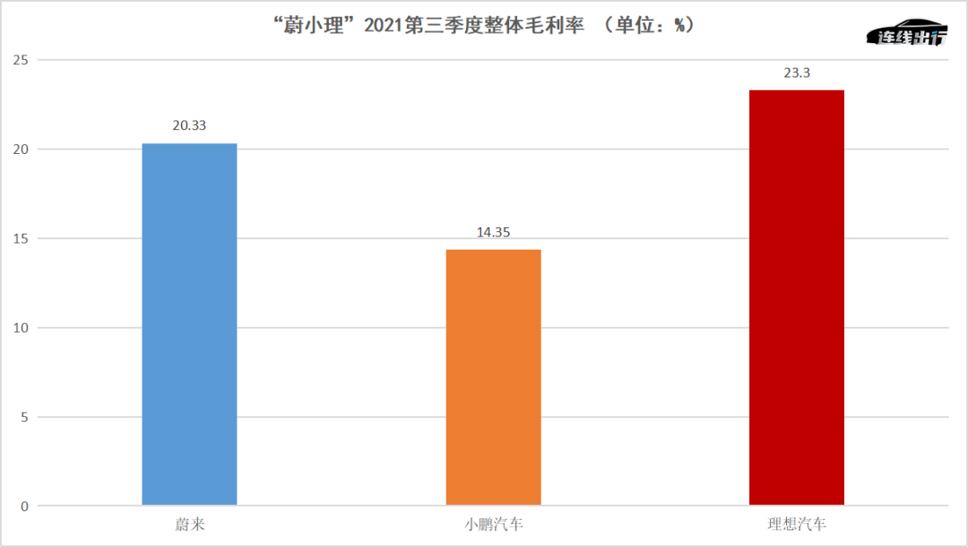 “蔚小理”2021第三季度整体毛利率,连线出行制图