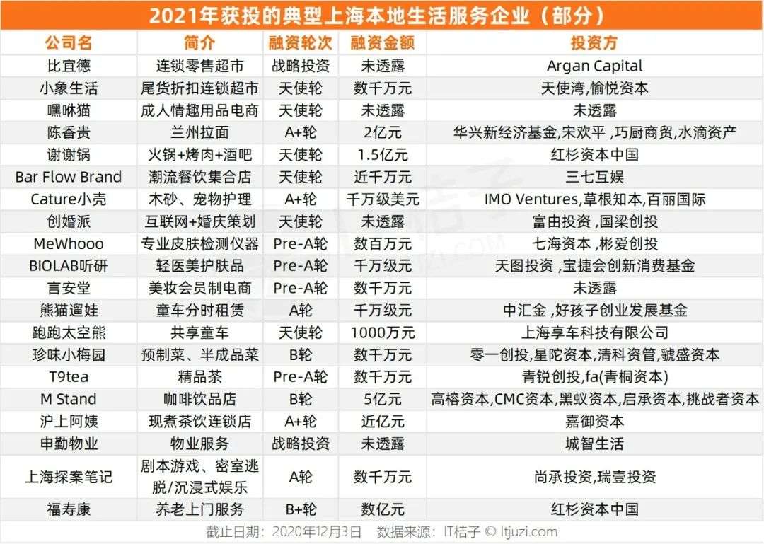 而另一方面,上海今年的融资事件中,还涌现了一批本地生活领域带有「烟火气」的创业公司,从提供餐饮美食的陈香贵兰州拉面、莫小仙自热火锅、新中式点心品牌虎头局,到美容美妆的新品牌「昕研」,宠物护理品牌「小壳」,还有上门养老服务的「福寿康」等,这些创业公司均在今年获得了投资。