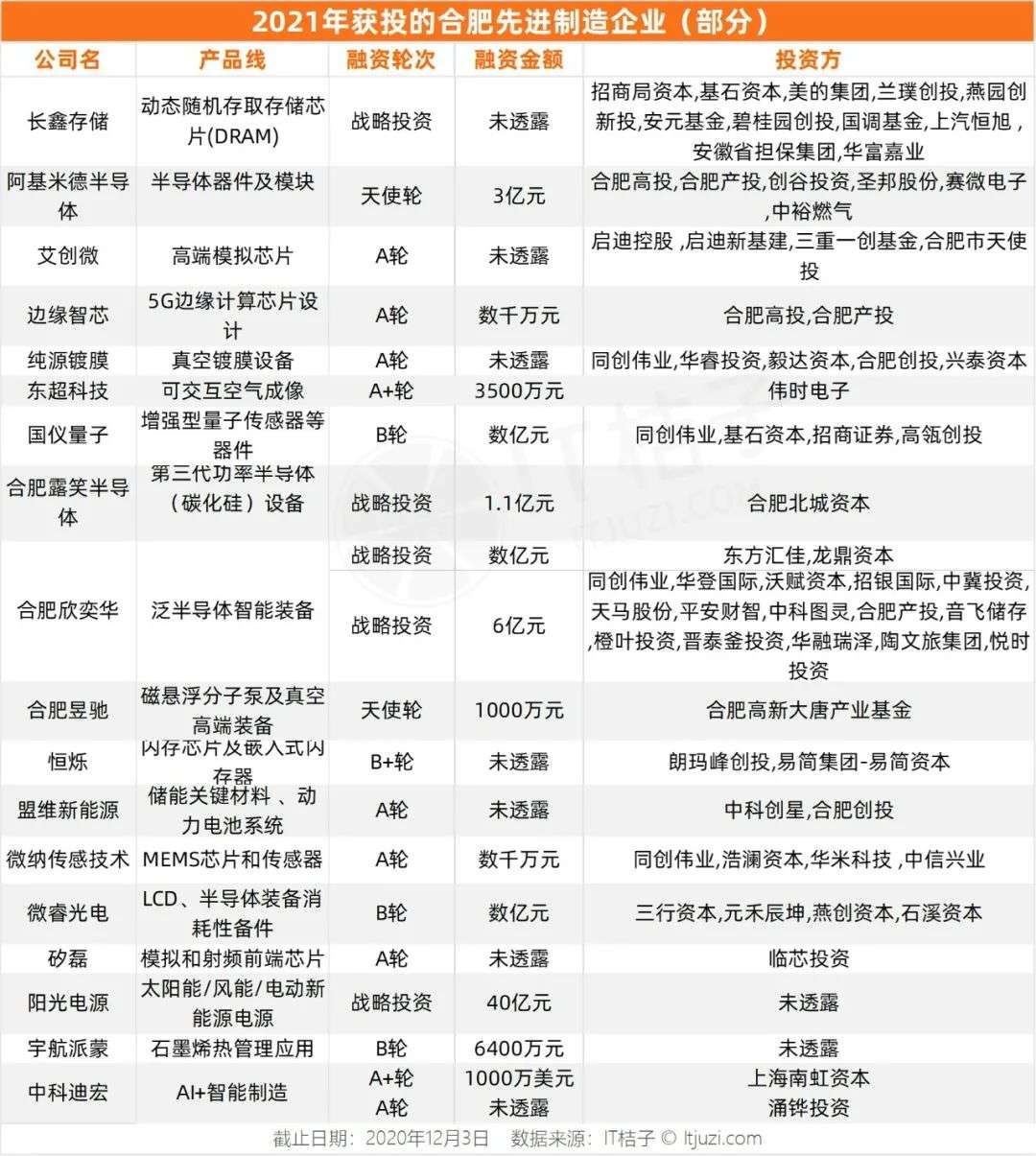 2017 年合肥入股兆易创新,成立合资公司长鑫存储,专攻 DRAM(动态随机存取存储器)芯片,建设了中国最大的储存芯片生产基地。2020 年,合肥以战略投资 70 亿元引进蔚来,推动新能源汽车产业链发展。