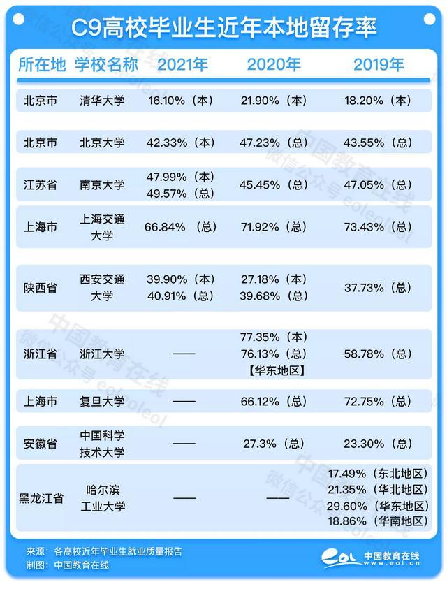 哪所C9高校毕业生更爱留在本地?