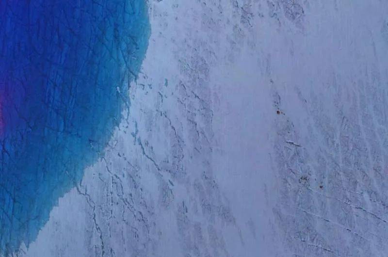尤其在每年夏天,随着气温升高和日照时间的增加,格陵兰冰原的表面会出现成千上万个融水湖,还有错综复杂的融水河。许多湖泊中的融水通过裂缝穿过厚厚的冰层,很快流到了冰原底部。由于这些源源不断的水流,冰原表面和和冰川床之间往往存在着许多开放的连接通道。