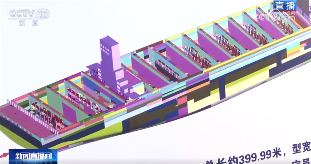 大连中远海运川崎船舶工程有限公司总经理助理 何金伟:目前这艘船的建造正按计划高效推进,我们计划在今年6月出坞下水,随后进入码头舾装阶段,争取在12月完成交付。未来,它将运行在国际航运干线上。现在在我们船厂,该船型的第二艘船也已按期开工,可以说我们现在是实现了24000标箱级甲醇双燃料集装箱船的批量化、连续化的建造。