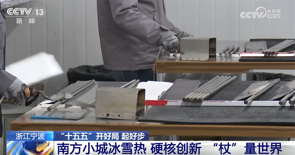 记者现在所在的这个小镇汇集了34家运动杖企业,不光做滑雪杖,还包含其他类型运动杖,年产量1500万根,年产值超过9.2亿元。在国内市场,销往东北地区、华北地区、西北地区,当然还有湖北、山东、安徽、浙江这些新兴市场;在国外市场,销往法国、德国、瑞士等14个国家,占据了全球六成的市场。可以说,基本上在各个雪场,我们都能看到来自中国、来自这个南方小城的冰雪元素。