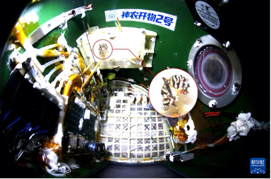 2025年12月15日拍摄的在太空中成功孵化的柑橘凤蝶。新华社发(重庆大学供图)