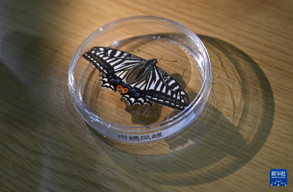 2月2日,在重庆大学深空探测联合研究中心,现场展示的柑橘凤蝶标本。新华社记者 陈诚 摄