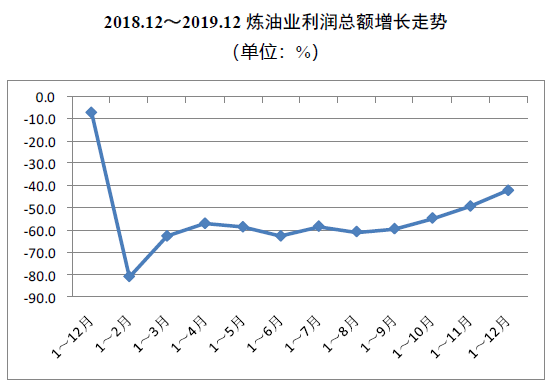 利润降幅不断收窄。截至12月末,炼油业规上企业1124家,累计利润总额947.0亿元,同比下降42.1%,降幅较前11月收窄7.1个百分点,占石油和化工行业利润总额的14.2%。