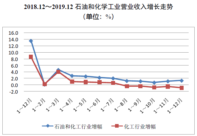 1~12月,石油和化工行业营业收入12.27万亿元,同比增长1.3%,增速较1~11月加快0.2个百分点,占全国规模工业营业收入的11.6%。