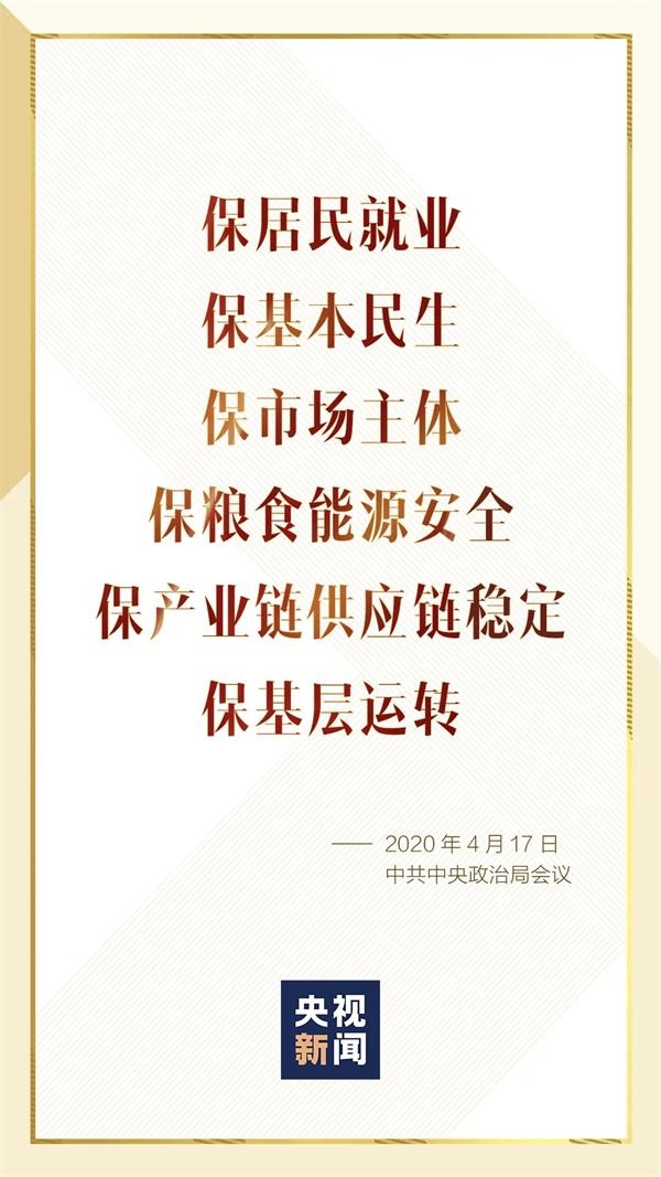 保居民就业、保基本民生、保市场主体、保粮食能源安全、保产业链供应链稳定、保基层运转。