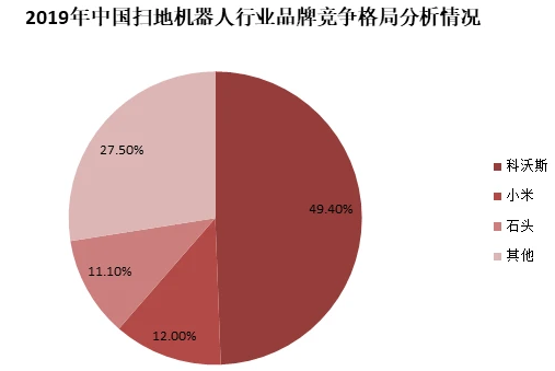 有关数据显示,当下中国扫地机器人市场虽然有着群雄逐鹿的态势,但是市场大头还是在科沃斯及小米系品牌掌控之下,2019年,科沃斯的市场占有率达到49.4%,小米的市场占有为12%,石头科技为11%,当然要是算上云米等其它品牌,小米系的市场份额还要更多。