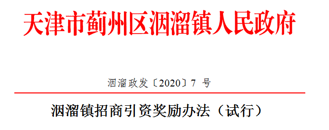 政策库 > 天津市蓟州区洇溜镇招商引资奖励办法(试行)