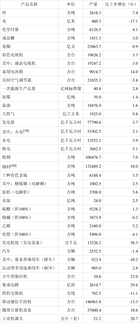 [18]2019年部分产品产量数据进行了核实调整,2020年产量增速按可比口径计算。