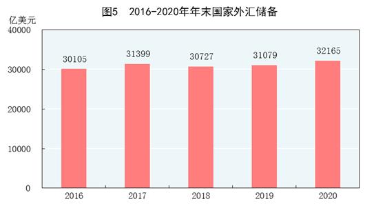 年末国家外汇储备32165亿美元,比上年末增加1086亿美元。全年人民币平均汇率为1美元兑6.8974元人民币,比上年升值0.02%。