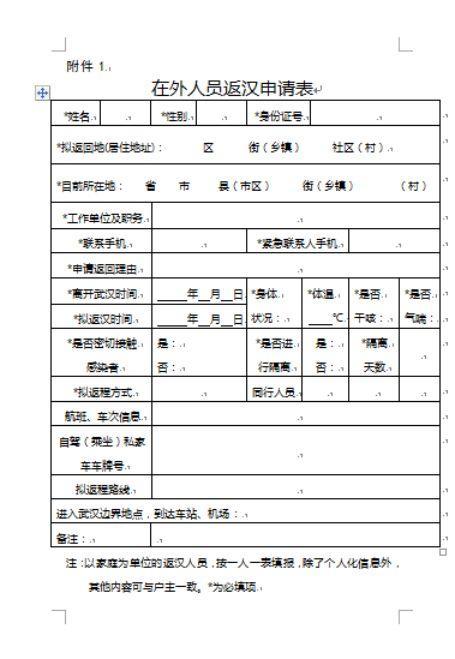 此外,这些人员需如实完整填写《在外人员返汉申请表》,并提交申请人目前所在地县(市、区)防控指挥部出具的健康证明。经江汉区防控指挥部审核后,审核信息将通过电话或短信反馈。