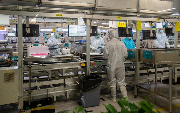 据联想集团有关负责人介绍,制造业是联想推进智能化转型并为之赋能的重点行业,针对工业企业智能化转型,联想可以从战略层面,生产经营层面,技术层面提供咨询服务。在联宝工厂的零部件仓库中,仅有少数几位工人将成箱的元件布置在自动传送带上,随后自动分拣系统会将对应的元件自动输送至三层楼高的立体分拣系统中,由自动化的AGV小车分配到生产线上的各个工段中去。在生产线上,具有自动监控功能的贴片机会自动追踪元件消耗状况,通过灯光等信号通知值班员工,只需要少数值班员工就可以维护数千台自动化的贴片机组成的生产线。作为智能制造转型的标杆,联宝工厂有一条“维纳斯生产线”,自动化率达到75%。