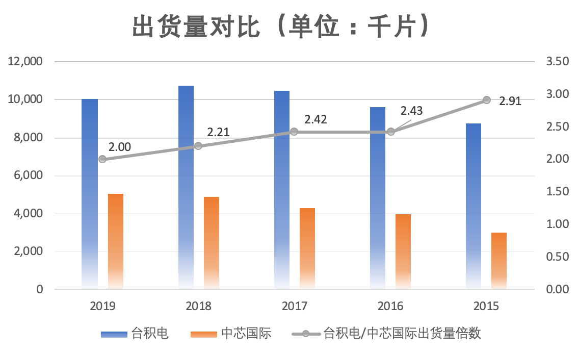 据《商业数据派》粗略计算,在2019年,台积电每个晶圆的出货价格约为3609.1美元,而中芯国际只有619.6美元,价格相差6倍之多。