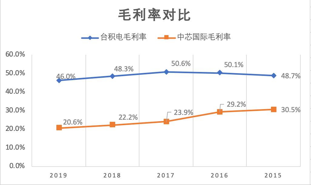 也正是因为价格低廉,中芯国际的毛利率一直保持在20%~30%之间,远低于台积电超过45%的毛利率水平。