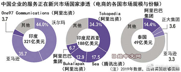 中国的阿里巴巴和腾讯正在国内外稳步推进收购与合作,构建“阿里巴巴经济圈”和“腾讯经济圈”。东洋证券亚洲公司的研究主管龚静杰指出了两家做法的差异,相对于通过收购掌握经营权的阿里巴巴,腾讯则将探索包括小规模投资在内的松弛合作,腾讯的聊天软件“微信”拥有10亿以上用户,似乎采取的战略是不断吸收合作伙伴的服务,进一步巩固平台优势。