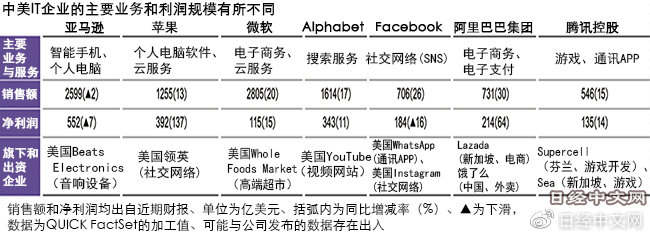 世界IT平台的主导权将由中美哪一方掌握?从在发达国家的销售额和用户人数来看,美国企业处于压倒性地位。但是“从以东南亚为代表的新兴市场国家的增长空间来看,中国企业具有竞争力”,美国投资公司Infusive Asset Management的Jenny这样认为。英国调查公司欧睿国际的统计显示,在电商市场,亚马逊在日美英排在首位。不过,在东南亚的人口大国印度尼西亚,中国企业通过向Tokopedia等当地企业的出资,掌握过半数份额,正在稳步巩固地位。