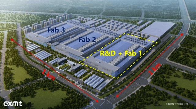 长鑫存储的第一家晶圆厂已经宣布了19nm技术的计划,总产能12万片/月,产能从两万片每月提升到三万片,推迟了一年多,于2019年底开始生产。长鑫存储计划在其Fab 1附近再增加两个晶圆厂。