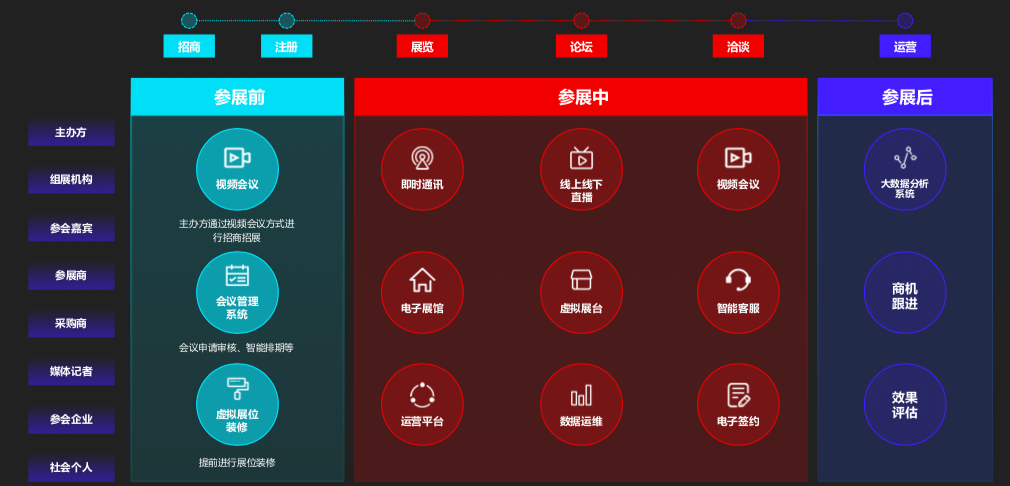 展会前、中、后期的各项流程及线上能力支撑